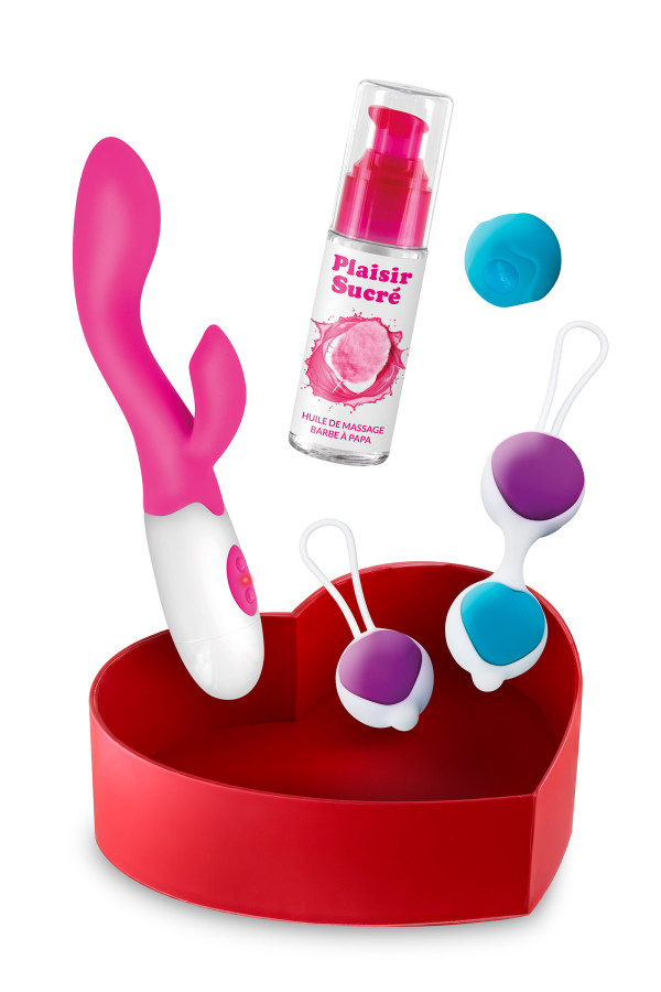 Vore grossiste sextoys vous propose un coffret plaisir intime : vibromasseur, boules de geisha & huile de massage.