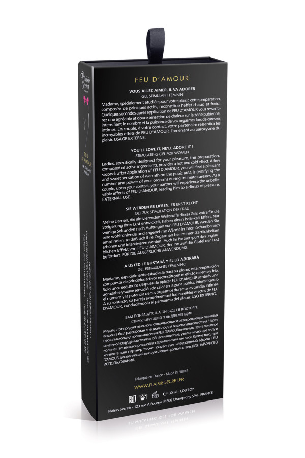 FEU D'AMOUR, gel intime stimulant pour la féminin de PLAISIR SECRET, est spécialement conçu pour optimiser et sublimer le plaisir de la femme, il agit également par contact sur le partenaire masculin.