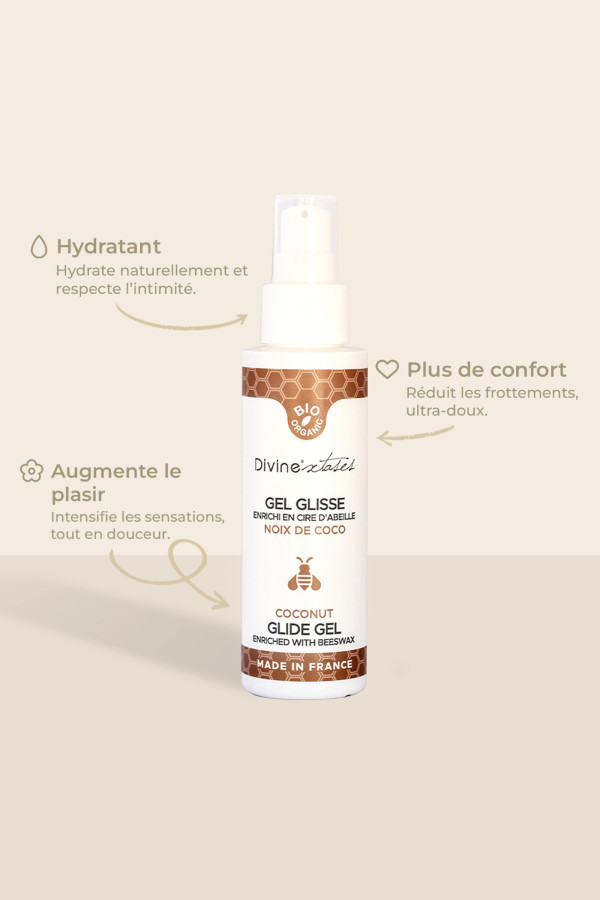 Ce gel lubrifiant noix de coco est enrichi à L'aloé vera et cire d'abeilles pour hydrater les parties intimes.