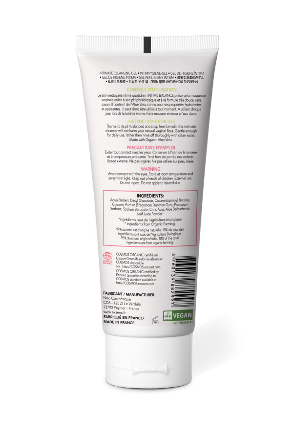 Proposez à vos clientes d'avoir une hygiène intime irréprochable, fraîche et agréable. Présenté par votre grossiste Exsens, ce gel nettoyant intime est à l'Aloé Vera Bio qui présente des vertus hydratantes et apaisantes. Dans vos commerces, vous pouvez conseiller un usage quotidien de ce gel nettoyant intime de haute qualité. Il est composé de 97% d'ingrédients d'origine naturelle et 10% d'ingrédients issus de l'agriculture biologique.