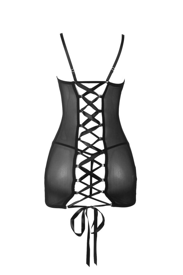 Nuisette transparente avec laçage au dos