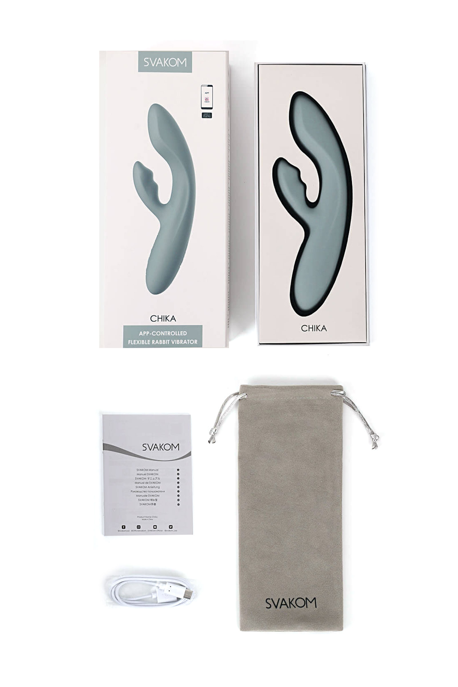- Inclus : Vibromasseur Chika, câble USB, pochette de rangement, manuel d’utilisation